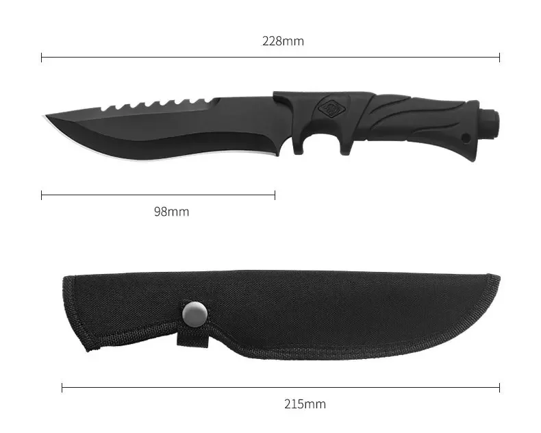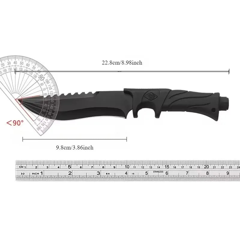 Sua construção sólida e o design ergonômico, com cabo de Plástico de 11 cm, garantem uma pegada firme e segura. A lâmina de 9.8 cm feita de Aço Inoxidável é extremamente afiada, ideal para tarefas táticas, trabalhos manuais (Woodworking) e, crucialmente, para defesa pessoal.
