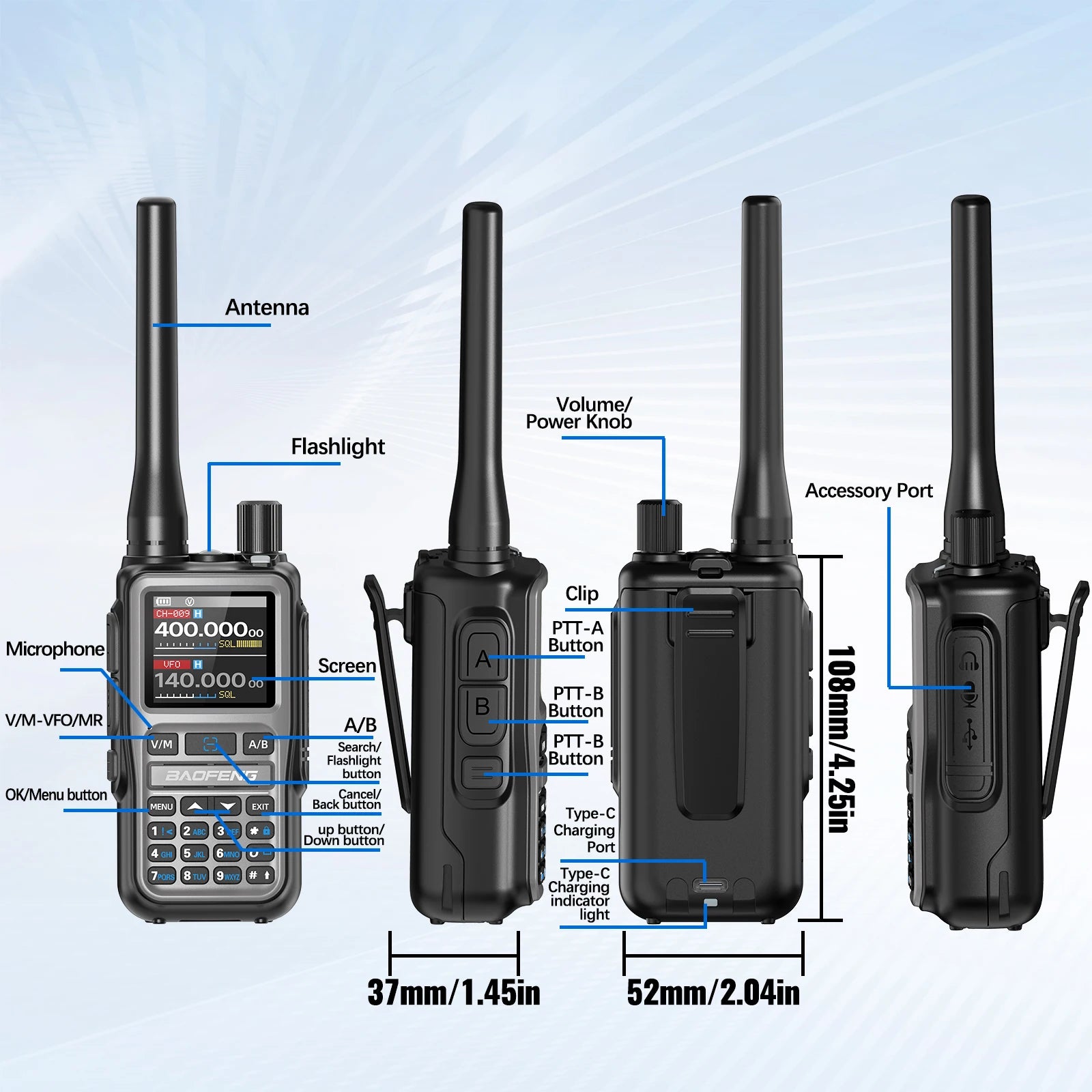 | Recursos Chave | Bluetooth, Cópia Sem Fio, Dual PTT, Carga Type-C |